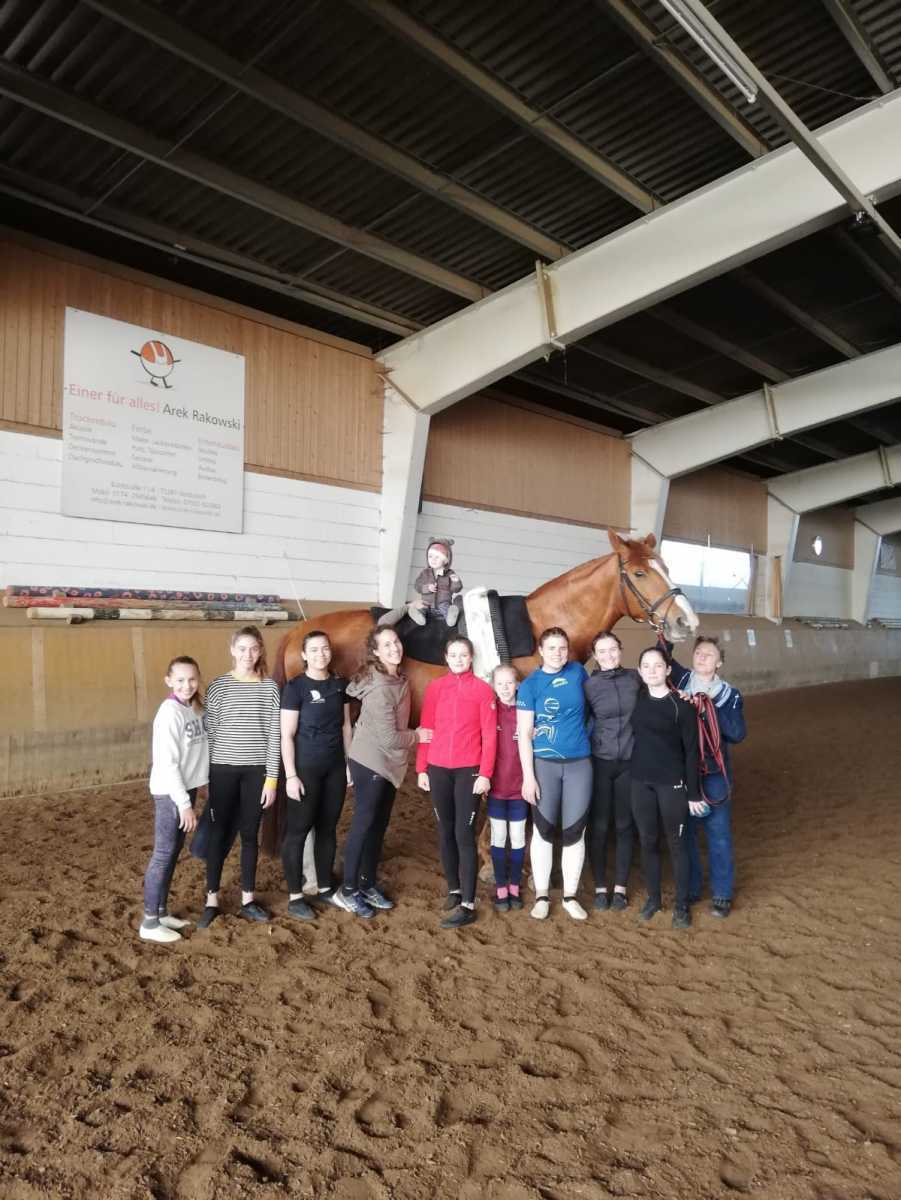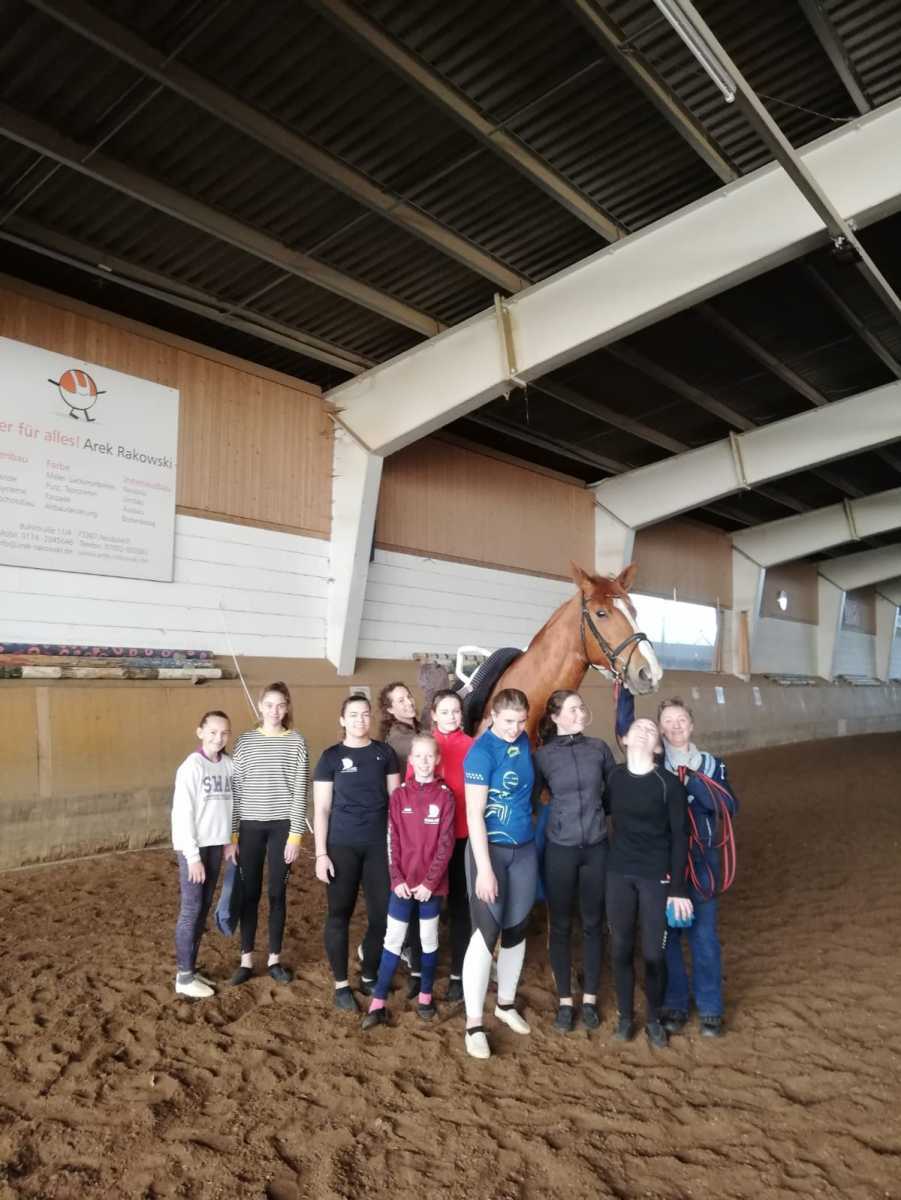 In den letzten zwei Jahren hat sich unsere S Junioren Gruppe in den Osterferien in Neubulach auf die kommende Saison vorbereitet. Die Reitanlage ist für uns ideal – Große Reithalle, Tonnenpferde und Movie ganztägig benutzbar. Pferdeboxen befinden sich gleich neben der Reithalle, Zimmer und Restaurant für die Voltis ebenfalls auf der Anlage, Referenten und Trainer allzeit bereit und sehr motiviert. Ostern 2019 trainierten wir mit Solveig Blankenhorn. Da sie noch sehr jung ist und mit ihrer Juniorengruppe Weltmeister wurde, konnte sie sehr gut mit den Fehlern und Problemen der Voltis umgehen und sie toll motivieren. Björn unterstützte uns beim Longieren und Korrigieren unserer Pferde. Bei Stützschwüngen und coolen Tipps für die Kür, ist er bei den Trainern und Voltis ebenfalls sehr beliebt. Wir können in Neubulach in kurzer Zeit sehr viel trainieren und werden optimal betreut. Natürlich kommt auch der Spaß nicht zu kurz. Ostern Neubulach ist bereits ein Fixtermin in unserem Kalender. Wir freuen uns schon auf 2020.